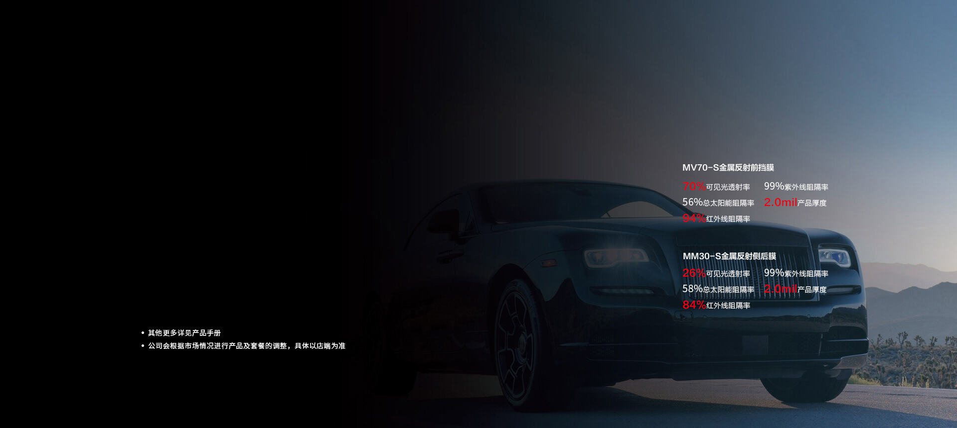 安全與隔熱共享,美化車輛外觀,同時(shí)讓玻璃的顏色和愛車的顏色相得益彰,更時(shí)尚、更高端。99%以上阻隔紫外線,保護(hù)肌膚健康與美麗。盡享尊貴盡享快樂(lè)。